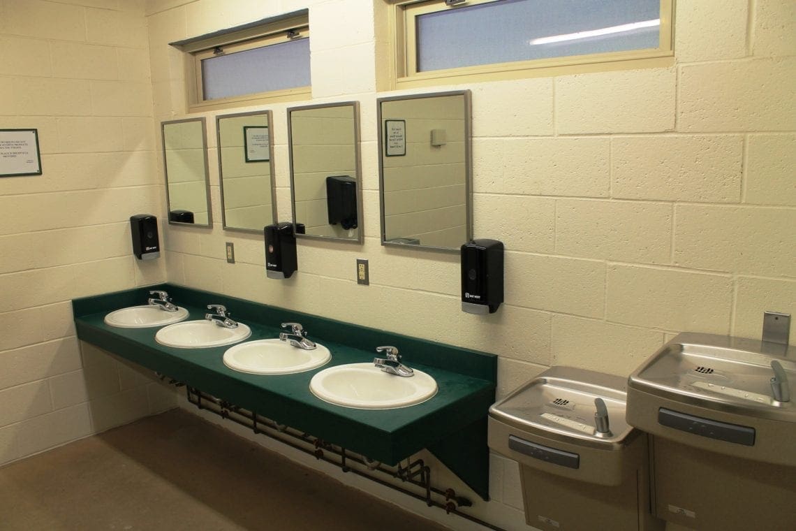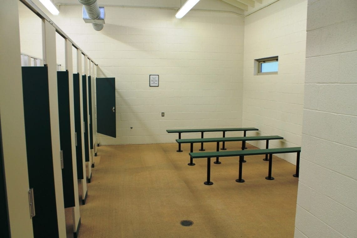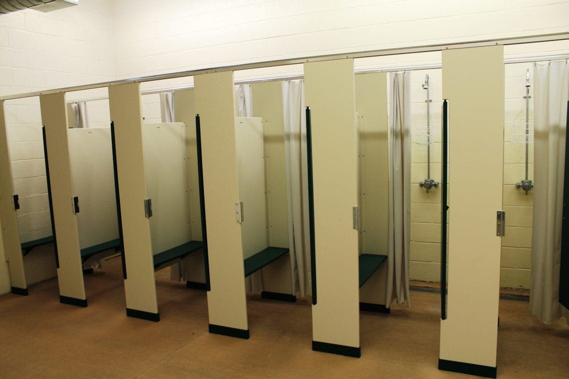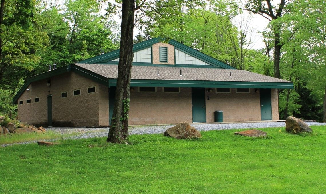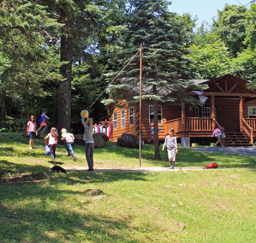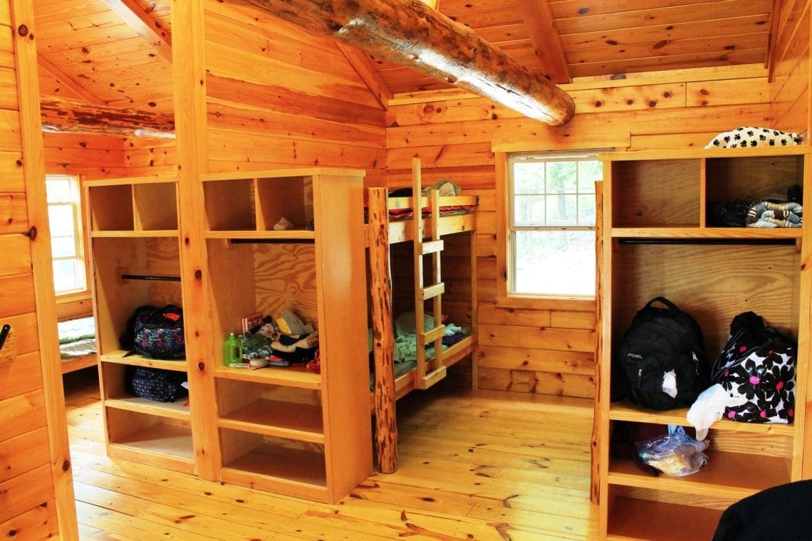 Each of our four ‘Villages’ has 6 log cabins that sleep up to fourteen people each in hand-crafted pine bunk-beds. There are 8 lower and 6 upper bunks. The state-of-the-art bathhouses are centrally located between Villages and provide plenty of room and privacy for even the largest group. All cabins are equipped with heat and electricity. Each Village has a cabin with a handicap accessible ramp and each bathhouse has accessible stalls.